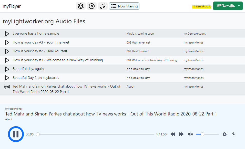 Sign In to access the new myPlayer web app to play all albums and free audio files from the myLightworker website; However, you can play the music any way you like.